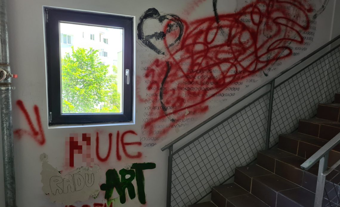 În Clujul în care Primăria încurajează arta stradalo-murală (a se citi: mâzgăliturile pe pereți), oferindu-le vandalo-artiștilor ziduri publice pe care să se manifeste legal, grafferii sunt tot mai tupeiști și mai dezinvolți, umplând în cartiere panourile din locurile de joacă pentru copii, parkingurile, clădirile publice, cu fel de fel de picturi imoralo-rupestre.