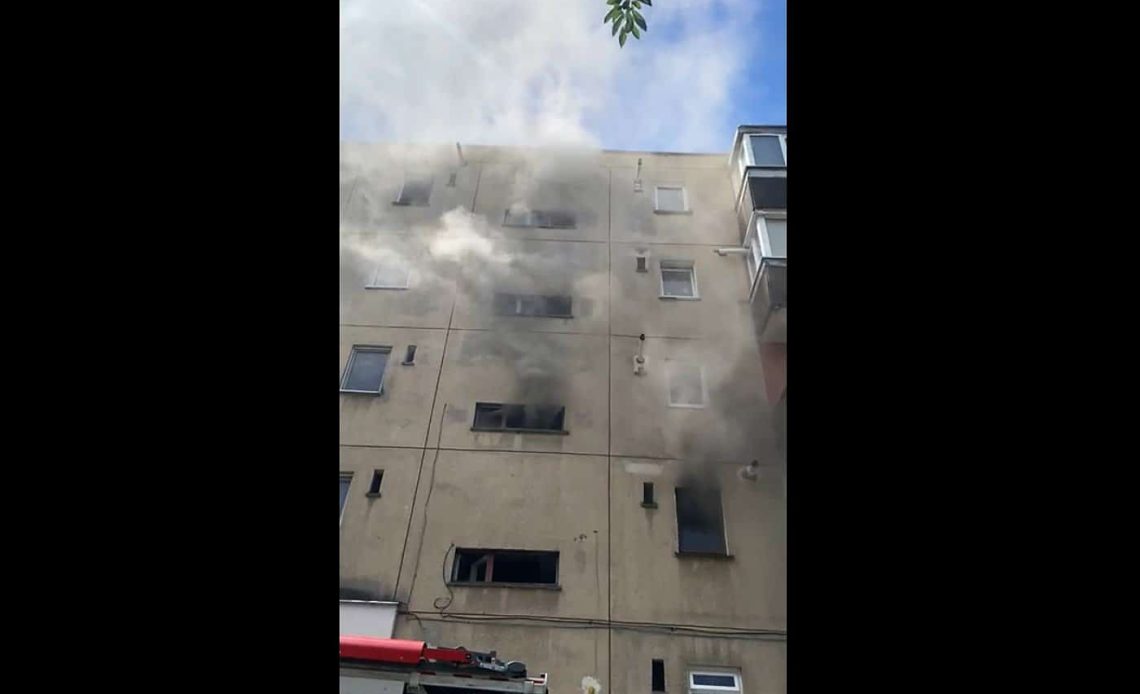 Mai exact, flăcările se manifestă în zona bucătăriei. Până acum nu sunt persoane care să solicite îngrijiri medicale.