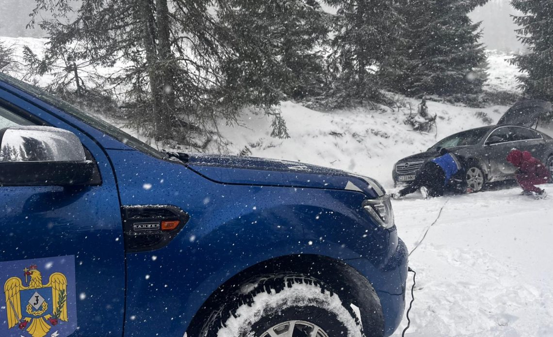 Pe timpul misiunii de patrulare din cursul zilei de 2 ianuarie, jandarmii montani din cadrul Postului de Jandarmi Montan Călățele-Fântânele au acordat sprijin pentru 3 autovehicule care ieșiseră în afara carosabilului.