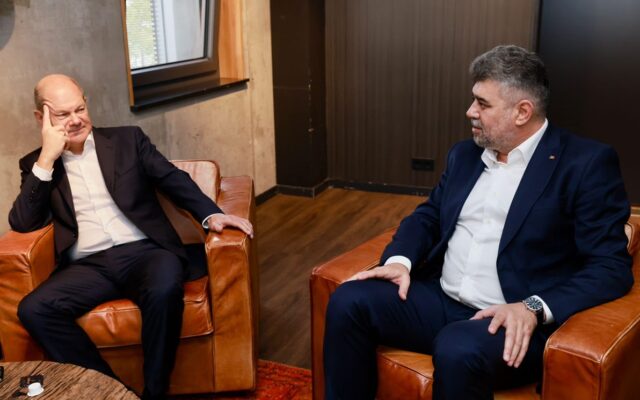 Președintele PSD, Marcel Ciolacu, a avut o întâlnire la Berlin, la Congresul Socialiștilor Europeni, cu Olaf Scholz, în cadrul căreia i-a transmis cancelarului german ”dorința PSD de a consolida prezența investitorilor germani pe piețele românești, mai ales în sectoare strategice, inclusiv prin relocarea în România a activităților companiilor germane care planifică să își reevalueze activitățile de producție din Rusia și Belarus”