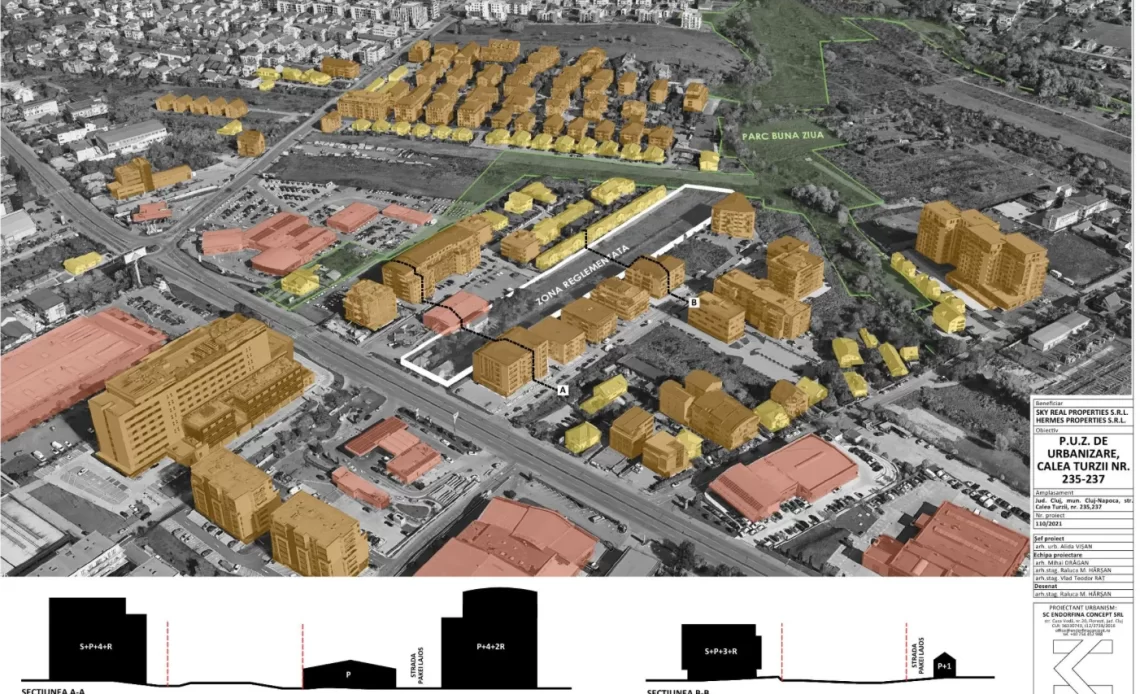 PUZ-ul ce urmează să fie aprobat în ședința Consiliului Local de joi prevede urbanizarea unui teren de 1,13 ha, pe Calea Turzii, vizavi de OMV, o zonă extrem de aglomerată din municipiul Cluj Napoca, fiind indicată o zonă mixtă cu regim de construire deschis. Pe o suprafață de numai un hectar se dorește construcția a nu mai puțin de 11 imobile.