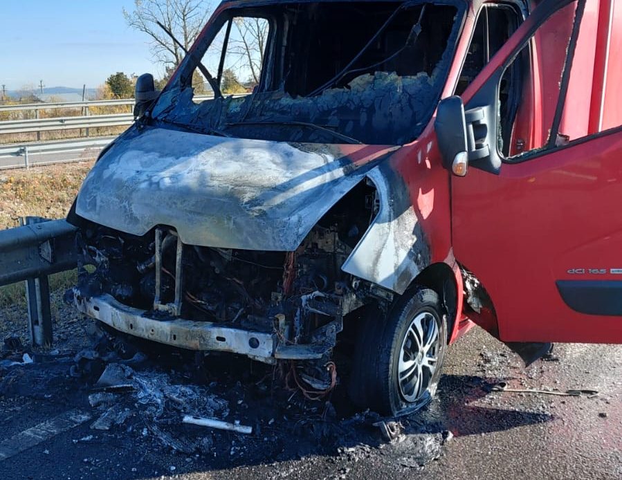 Două echipaje din cadrul Detașamentului Turda au intervenit în urmă cu puține momente pentru stingerea unui incendiu care a afectat o autoutilitară situată pe breteaua de legătură dintre autostrăzile A10 și A3.