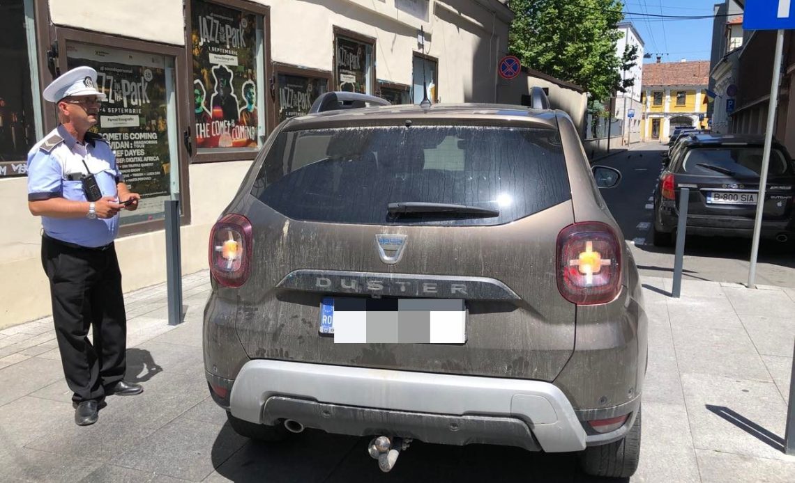 O Dacie parcată pe mijlocului drumului în buricul târgului ”smart” Cluj-Napoca l-a lăsat cu gura căscată până și pe profesionistul în amenzi al Poliției Locale, care și-a făcut imediat apariția la fața locului, cu chitanțierul.