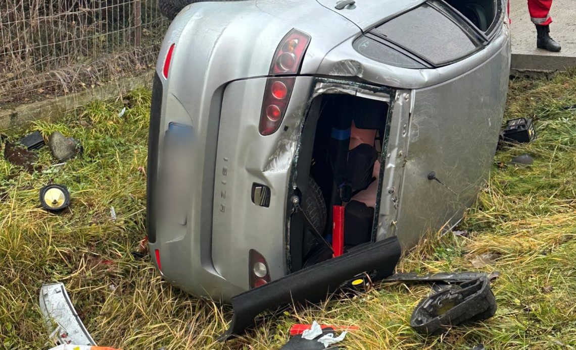 O mașină s-a răsturnat la ieșirea din Poieni