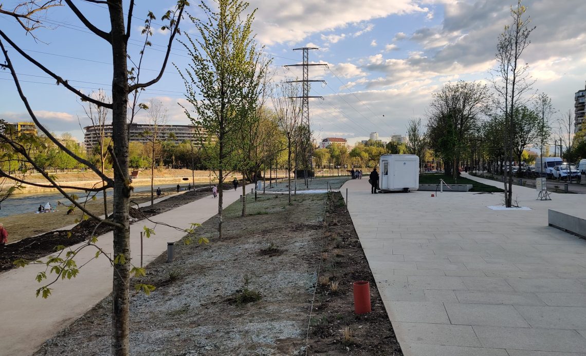 Hai, ca pe malul drept mai închid un ochi ca le-a trebuit musai o fasiuta verde, fără o calitate anume, între drumul de pietoni și bici, dar la ce au distrus una din puținele suprafețe mai mari, de valoare recreativa, adică una din două, cu PATRU drumuri pentru pietoni? Dar ce vor să facă draga acolo? Bâlci? Street food? Pentru cine, că nu va mai fi loc pentru altceva de atâtea „pietonale”.