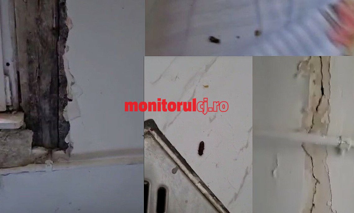 Din imaginile furnizate de cititor se poate observa cum la unul dintre geamuri tencuiala este căzută jos, iar în pat au fost surprinși mai mulți gândaci morți pe lângă așternuturile murdare.