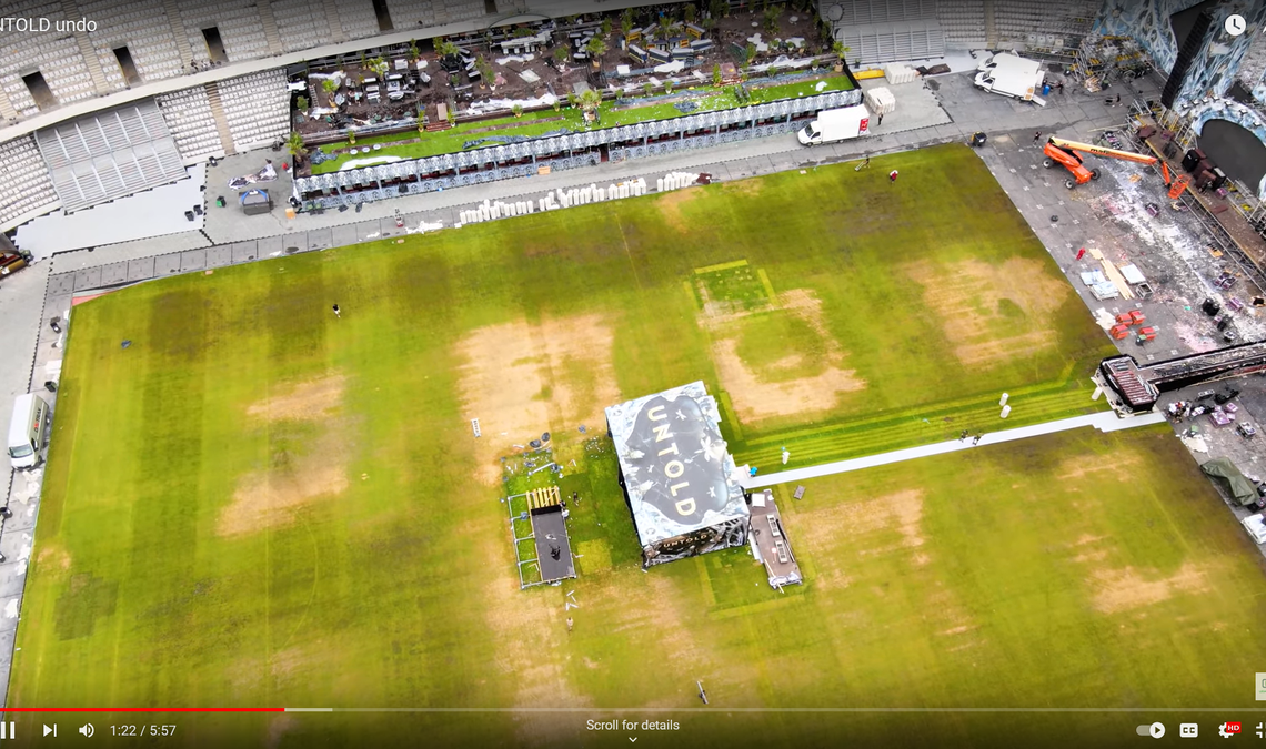 În vară, în luna august, gazonul de pe Cluj Arena a fost „schimbat” după terminarea discotecii ilegale de muzică pe stick, Untold. De mântuială – după cum s-a văzut şi cu ocazia meciului dintre România şi Slovenia.