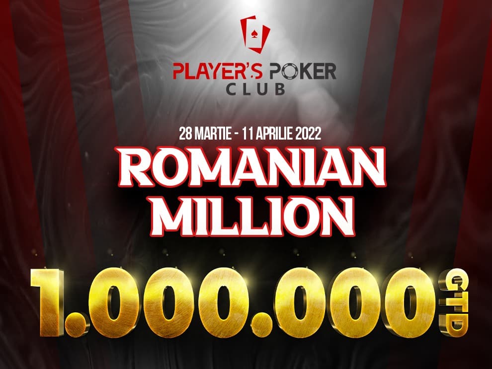 Player`s Poker Club din Cluj-Napoca a anuntat de curand unul dintre cele mai mari evenimente pokeristice din tara noastra din ultimii ani, turneul Romanian Million cu suma de 1.000.000 RON Garantat urmand sa se desfasoare in perioada 28 martie – 11 aprilie. Este prima editie a acestui turneu si asa cum noteaza site-ul oficial Player`s Poker Club, se doreste atragerea unui numar cat mai mare de jucatori din tara si strainatate, intr-un eveniment cu adevarat unic.