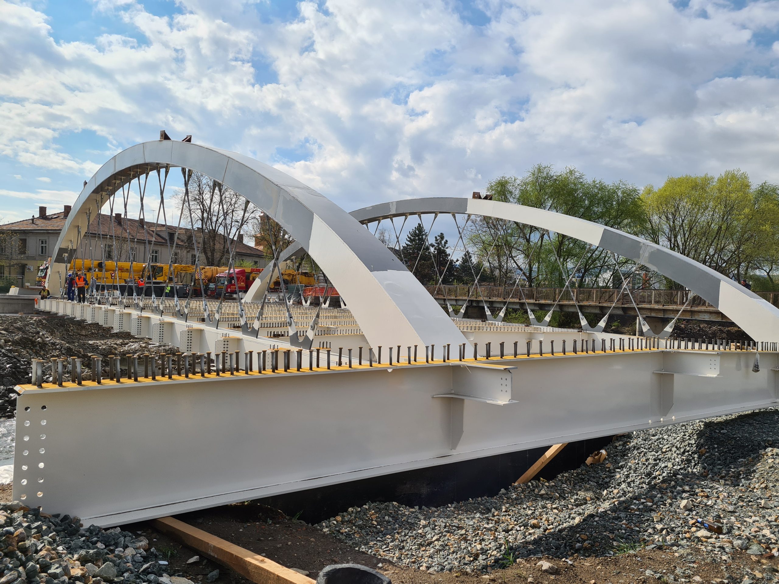 Au fost realizați pași importanți în proiectul podului care leagă strada Oașului de strada Răsăritului peste Someșul Mic, primul arc metalic cu tiranți prevăzut în proiect a fost instalat ieri, 19 aprilie. Lucrările sunt în grafic.”
