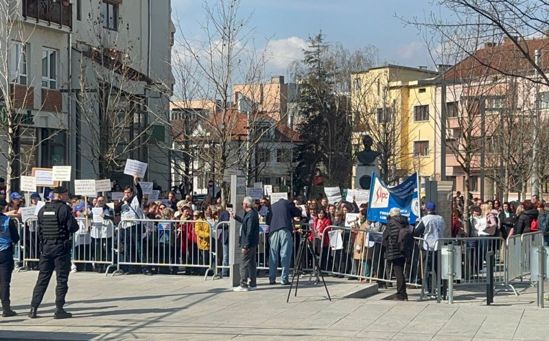Profesorii clujeni protestează la sediul Prefecturii Cluj, nemulțumiți de salarizare și modul de aplicare a sporurilor în învățământ.