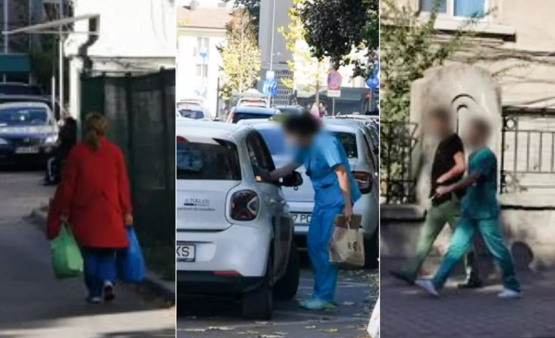 În celelalte imagini, membri ai personalului sanitar se plimbă sau își ridică prânzul din stradă, îmbrăcați în haine de spital. Se află pe trotuarul din fața clădirii „Palat Nou”, pe strada Clinicilor, 4-6, unde își desfășoară activitatea Secțiile Clinice Medicină Internă II-III, Chirurgie II, ORL, Reumatologie și Chirurgie Vasculară, dar și Institutul Clinic de Urologie și Transplant Renal.