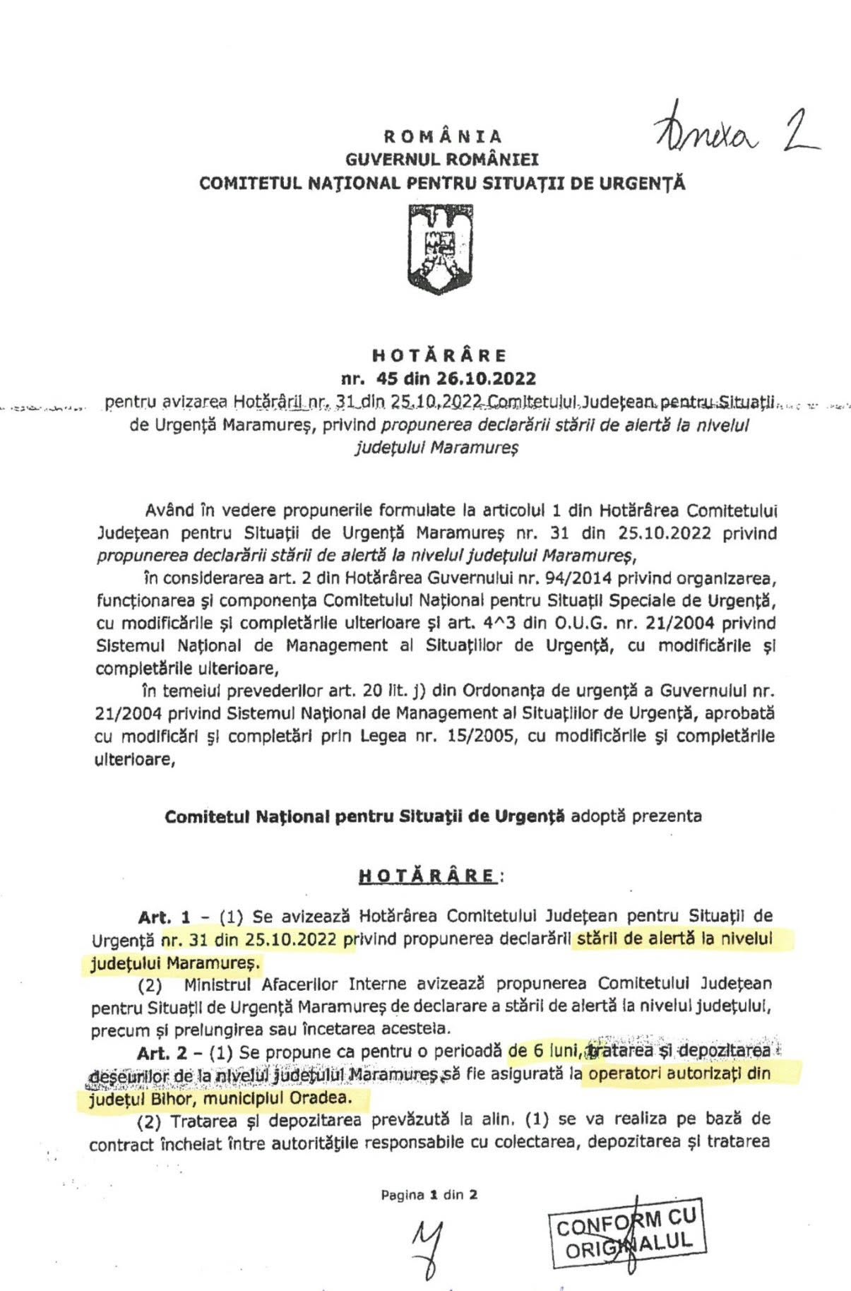 Prin acest act, a obligat toate persoanele fizice, juridice și instituțiile din județul Maramureș, ca întreaga cantitate de deșeuri produsă în județ să fie depozitată exclusiv la groapa de deșeuri din Oradea administrata de Eco Bihor. Tariful de depunere a fost dublu spre triplu fața de orice alt depozit !