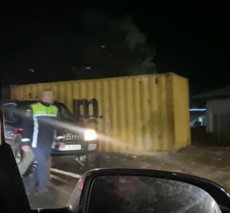 Din primele verificări a rezultat faptul că un ansamblu rutier, format din cap tractor și semiremorcă, care transporta două containere metalice, a fost implicat într-un incident, în urma căruia unul dintre containere s-ar fi desprins de pe platforma camionului, în condiții ce urmează a fi stabilite, fiind târât pe carosabil pe o distanță scurtă și acrosând doi stâlpi metalici și un stâlp din lemn.