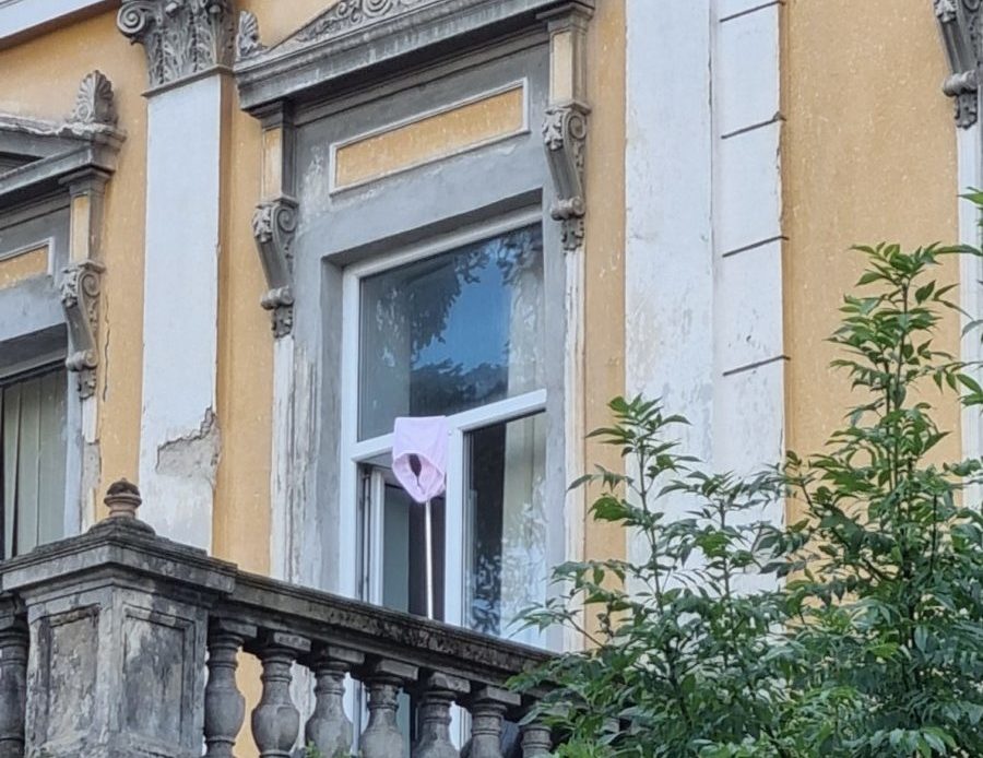 Pacienții Spitalului Clinic CFR Cluj-Napoca protestează împotriva condițiilor de spitalizare, afișând lenjeria intimă în ferestre și balcoane.