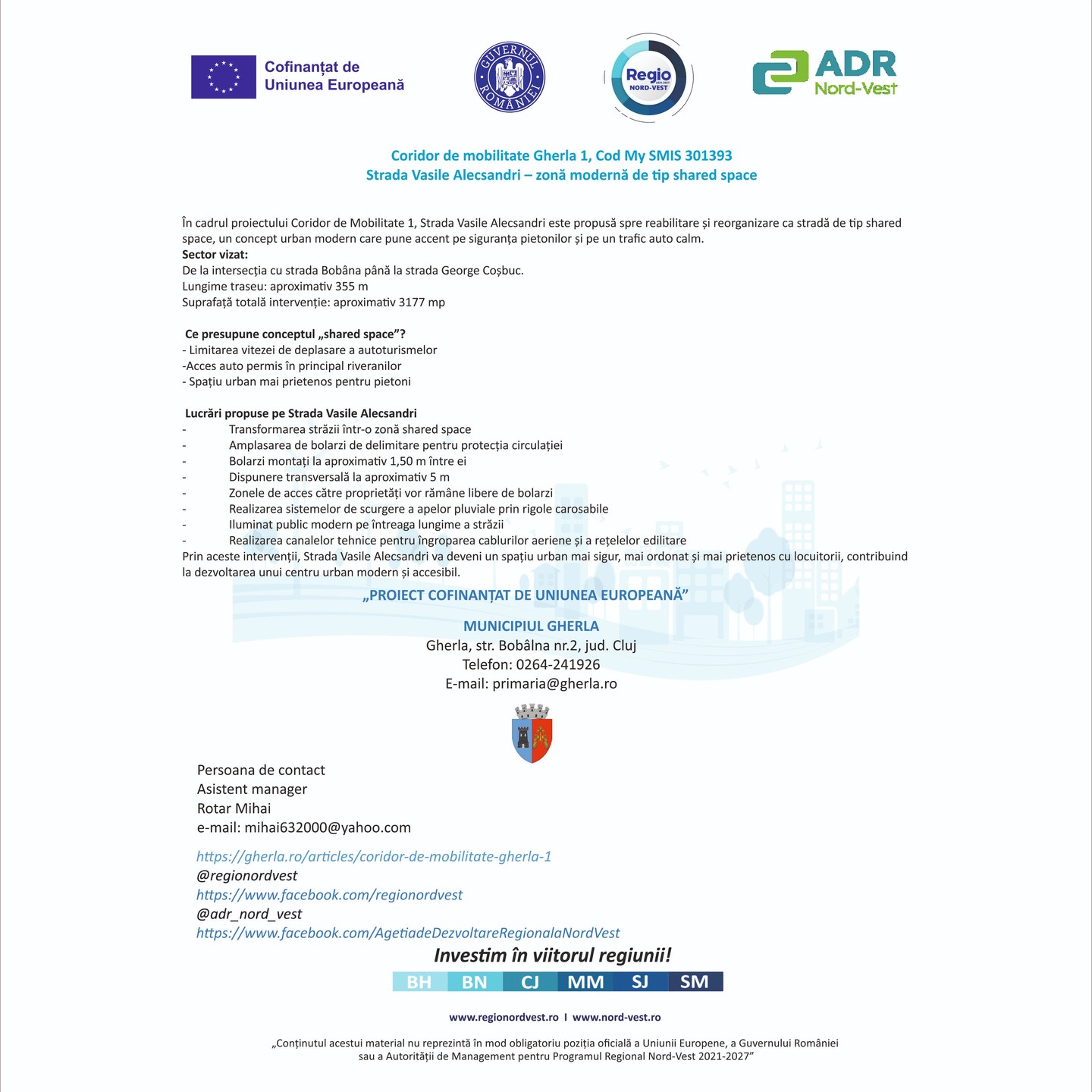 Prin aceste intervenții, Strada Vasile Alecsandri va deveni un spațiu urban mai sigur, mai ordonat și mai prietenos cu locuitorii, contribuind la dezvoltarea unui centru urban modern și accesibil.