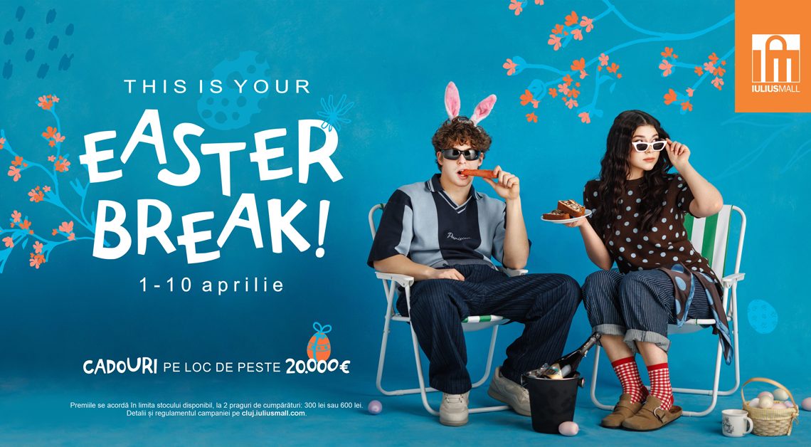 La Iulius Mall Cluj, începutul lui aprilie înseamnă mai mult decât planuri de sărbători, colecții noi sau idei de vacanță. Până pe 10 aprilie 2026, campania „THIS IS YOUR EASTER BREAK!” transformă sesiunile de shopping într-o experiență completă, cu premii instant la branduri îndrăgite. Și nu uita: cu cât iei mai multe cadouri, cu atât surprizele pentru tine sunt mai mari!