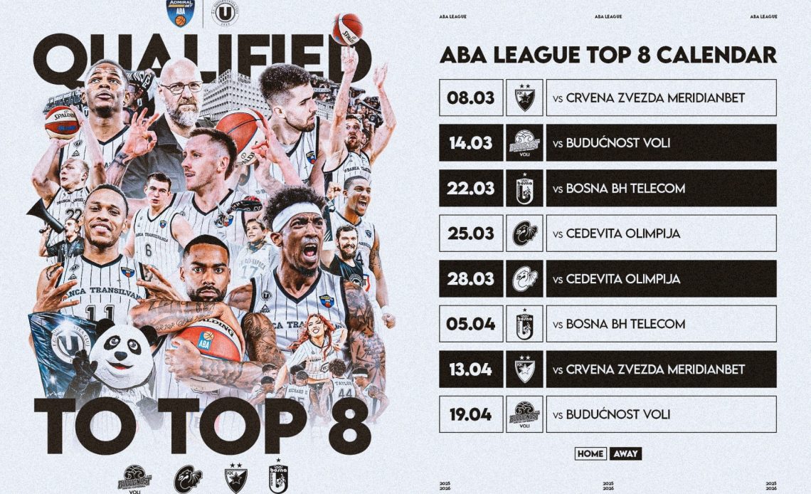 Astfel, programul anunţat de organizatori pentru U BT Cluj este: U – Cedevita (23 martie, amânat), U – Steuaa Roşie Belgrad (8 martie), Buducnost – U (14 martie), KK Bosna – U (22 martie), Cedevita – U (28 martie), U – KK Bosna (5 aprilie), Steaua Roşie Belgrad – U (13 aprilie), U – Buducnost (19 aprilie).