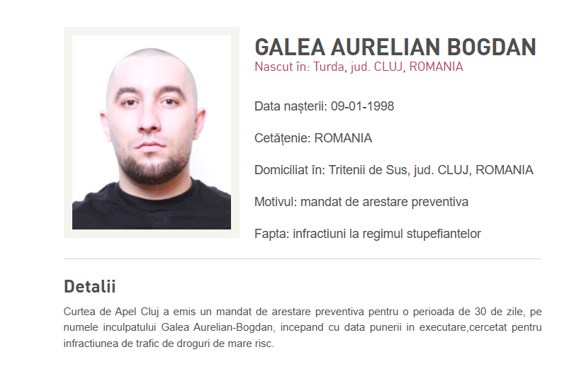 Galea Aurelian Bogdan avea pe numele său un mandat de arestare preventivă, el făcând parte din dosarul celor 14 traficanți reținuți în decembrie, alături de avocata Sonia Almaș.