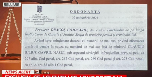 „Domnul Năsui este vizat de o anchetă penală şi are un dosar de urmărire penală. Documentul care arată că el este subiectul unei anchete penale, că este urmărit penal pentru fapte foarte grave: ajutarea infractorului, ascunderea, distrugerea sau alterarea de probe şi neglijenţă în serviciu.