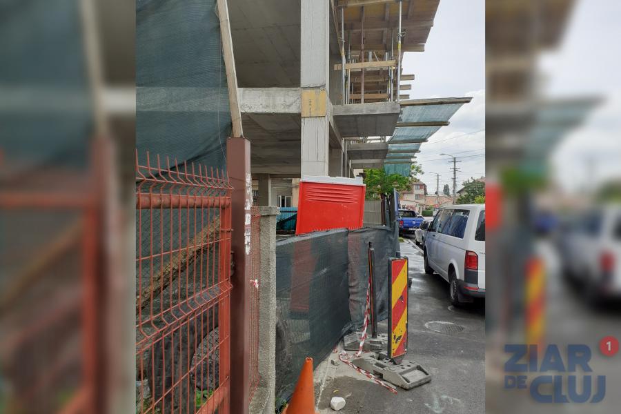 Pe strada Mărășești, la numărul 40, pe o stradă de case, cu regim mic de înălțime, un investitor s-a decis să construiască un bloc cu 5 etaje, plus un etaj retras, cireașa de pe tortul urbanistic stricat al zonei. Și, a doua cireașă de pe tort, a mai ieșit cu balcoanele și peste trotuar, unde este extins în prezent șantierul.
