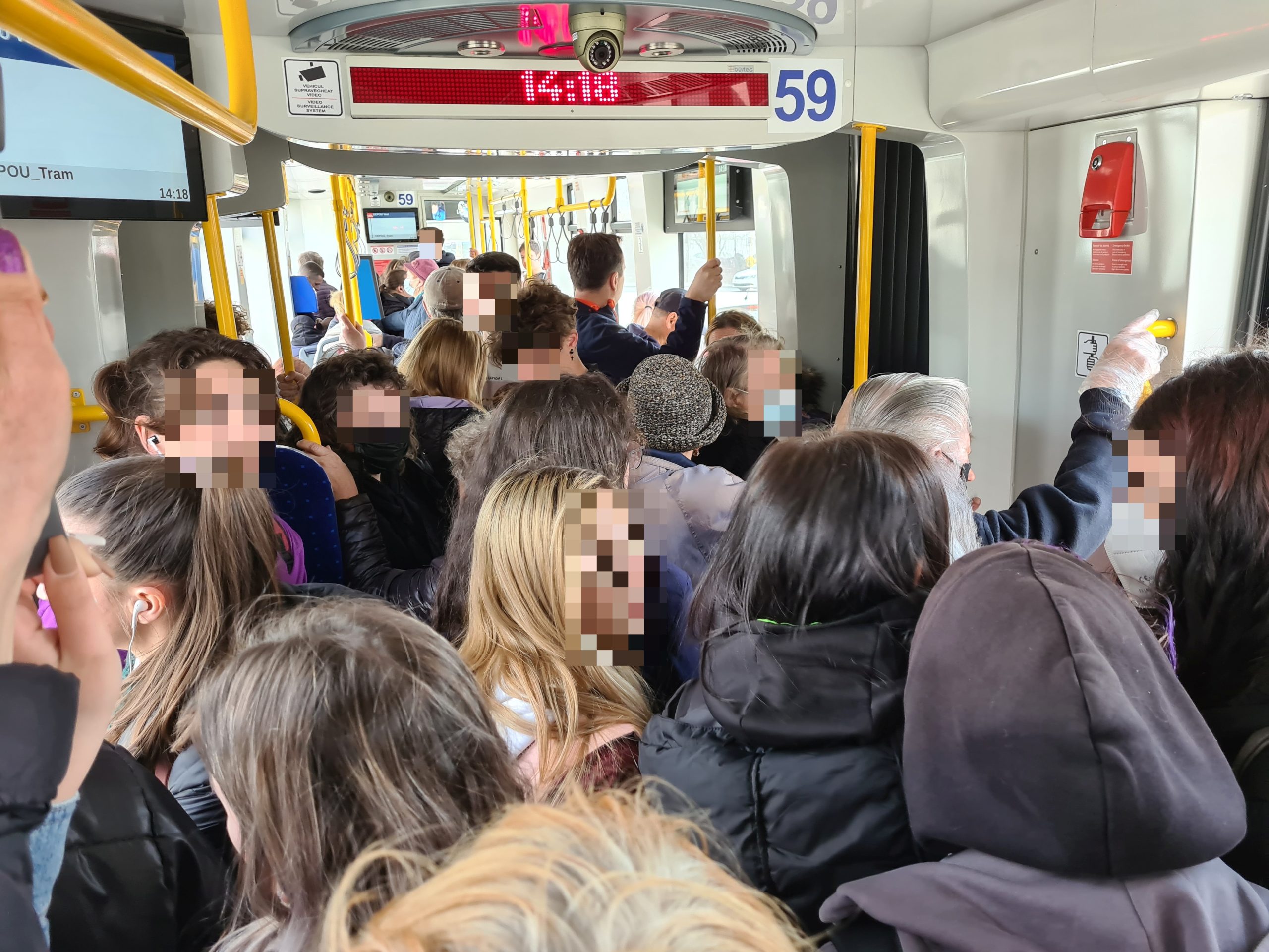 Înghesuiți ca sardelele în conserva metalică a tramvaiului 102, astăzi, la ora 14, tinerii care ieșeau de la școală/facultate, oamenii maturi care se întorceau de la serviciu, împreună cu pensionarii, respirau același aer și, dată fiind incidența Covid din municipiu, împărțeau, cu puțină neșansă, și aceiași viruși: