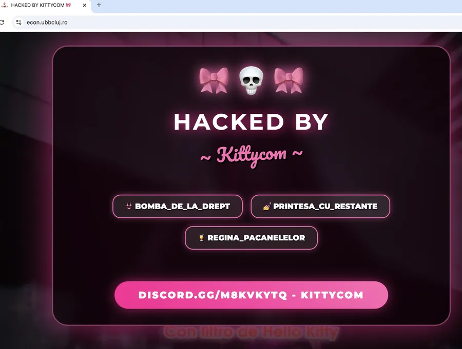 În cursul dimineții, mesajul de întâmpinare la accesarea site-ului anunța că acesta a fost ținta unui atac cibernetic, „semnat” Kittycom. Ulterior, pe site apare doar o informare de site aflat în lucru.