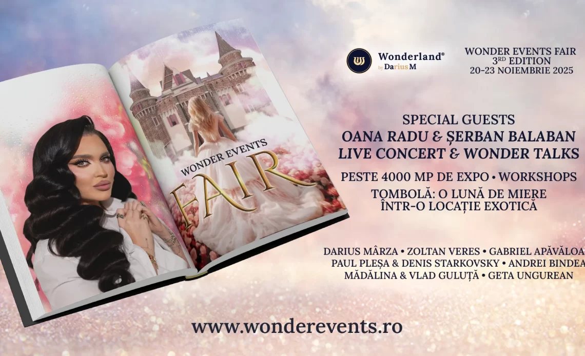 Deja consacrat drept cel mai mare târg de evenimente din România, desfășurat pe o suprafață de peste 4.000 mp, Wonder Events Fair le propune, anul acesta, vizitatorilor cea mai amplă și complexă dintre ediții: interacțiuni cu peste 150 de furnizori și profesioniști, concert LIVE Oana Radu, Wonder Talks și o super tombolă cu premii spectaculoase.